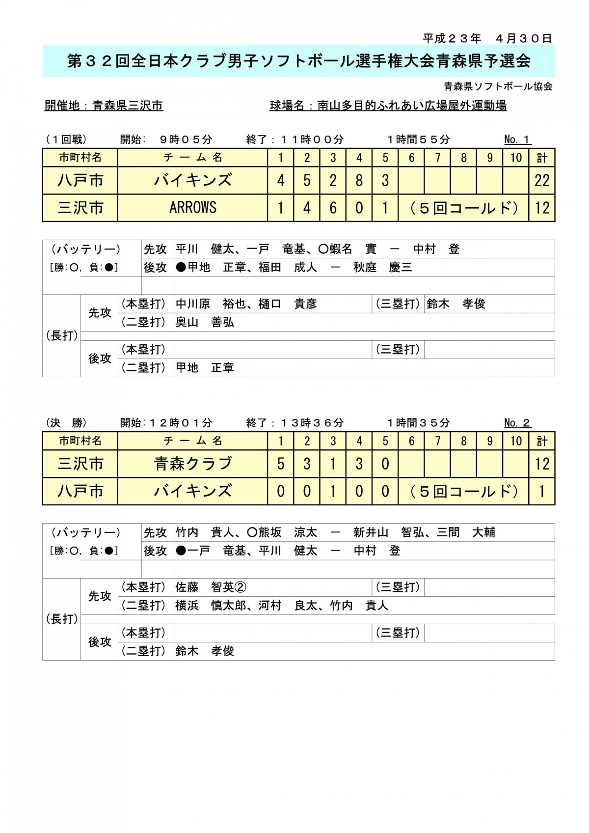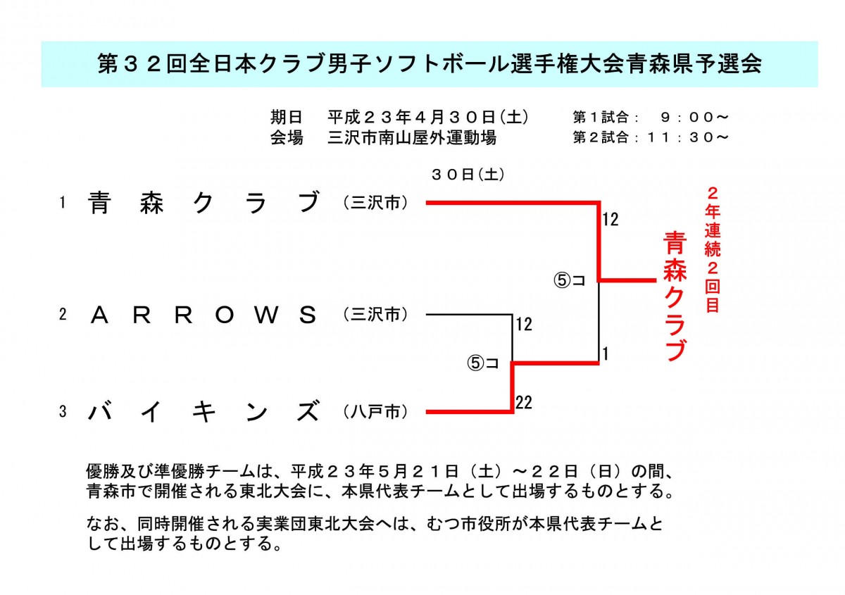 4月30日(土) 第32回全日本クラブ男子ソフトボール選手権大会青森県予選会