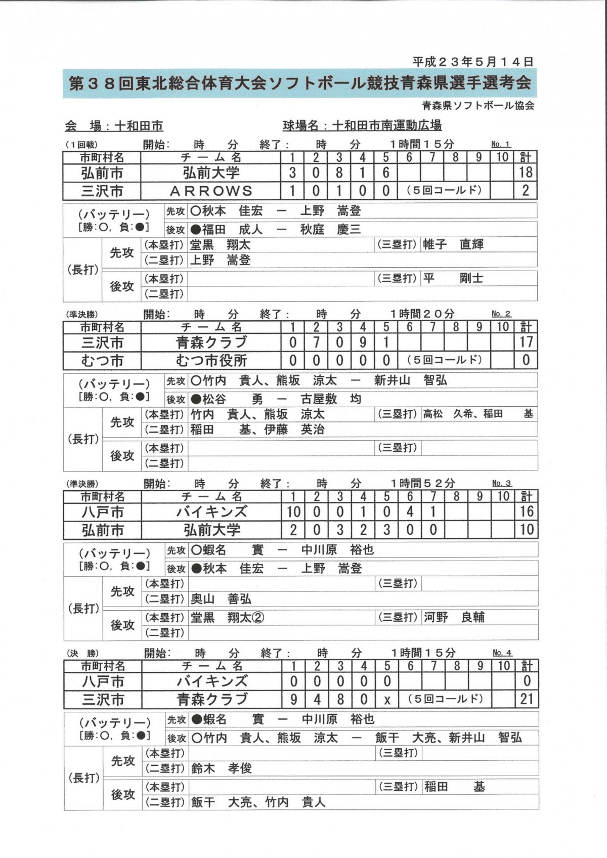 5月14日(土) 第38回東北総合体育大会ソフトボール競技青森県選手選考会
