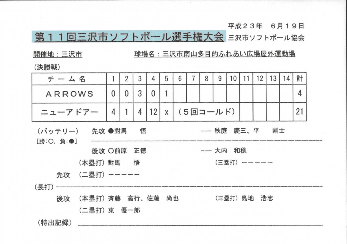 6月18日(日) 第11回三沢市ソフトボール選手権大会