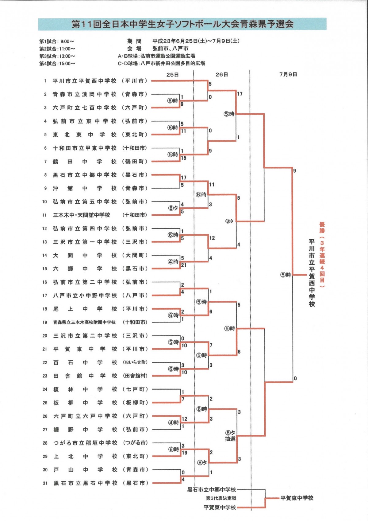 6月25日(土)〜26日(日) 第11回全日本中学生女子ソフトボール大会青森県予選会