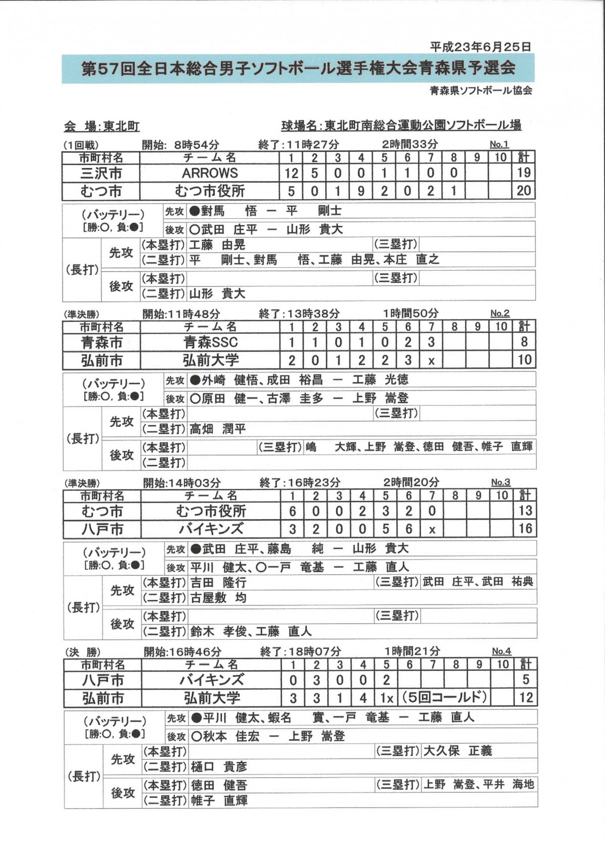 6月25日(土)〜26(日) 第57回全日本総合男子ソフトボール選手権大会青森県予選会