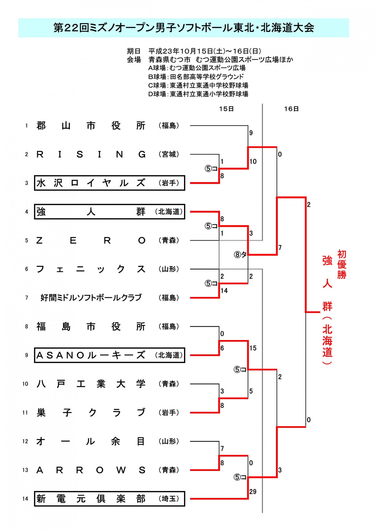 10月15日(土)~16日(日) 第22回ミズノオープン男子ソフトボール東北・北海道大会